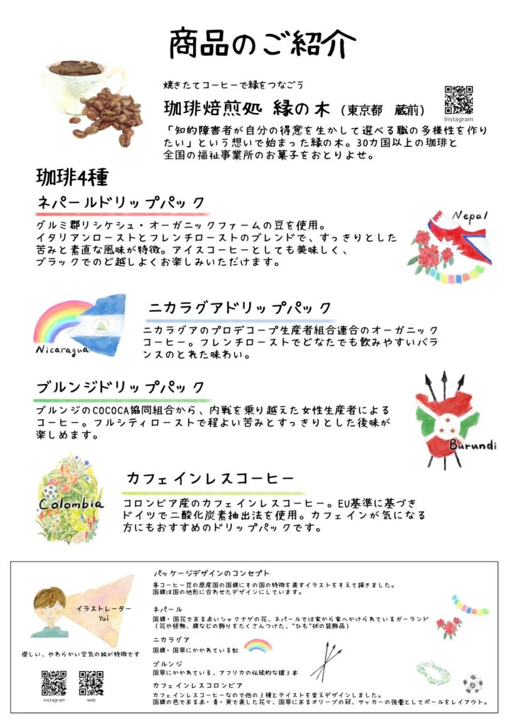 ドリップパック用オリジナルスッテカーのイラストやデザインを担当しました。